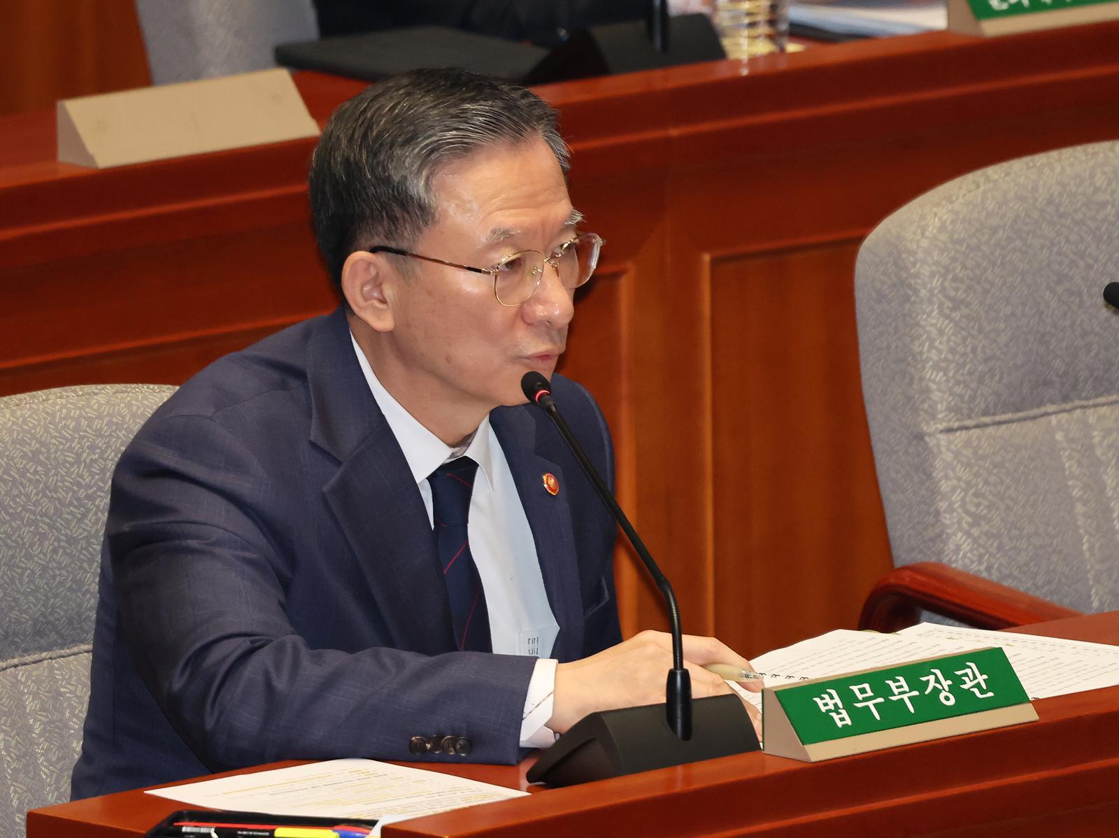 정 장관은 대통령실 관여 의혹에 대해서도 선을 그었다. 그는 항소 포기와 관련해 대통령실과 직·간접적으로 논의한 적이 있느냐는 질의에 “사건과 관련해서 대통령실과 제가 논의하지를 않는다”고 강조했다. 이어 “대통령실에 ‘항소했다, 안 했다’ 보고 여부는 관여하지 않는다”며 “다만 그것과 관련해 대통령실과 의논한 바는 전혀 없는 것으로 안다. 저 역시 마찬가지”라고 말했다.