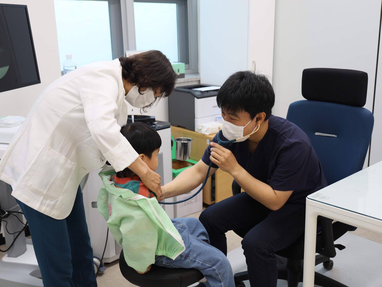 전남 곡성군 보건의료원에서 최용준 소아청소년과 전문의(오른쪽)가 아동 환자를 진료하고 있다. 곡성군 제공