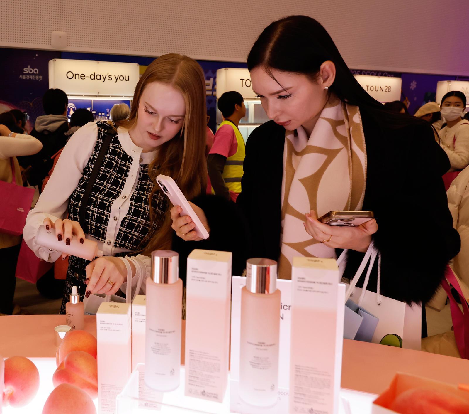 29일 서울 중구 동대문디자인플라자(DDP)에서 열린 ‘2025 서울콘 K뷰티 부스트’를 찾은 외국인 관람객들이 한 화장품 업체 부스를 방문해 제품을 체험하고 있다. 서울경제진흥원이 주관한 이 행사는 뷰티 크리에이터, 해외 인플루언서 등을 초청해 한국 대표 뷰티 브랜드를 소개하기 위해 마련됐다.