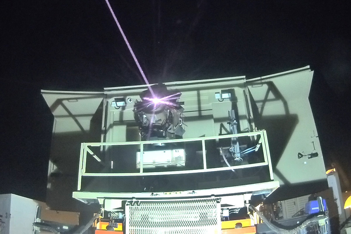이스라엘의 레이저 기반 방공 시스템인 아이언빔의 요격 실험 장면. 라파엘 제공