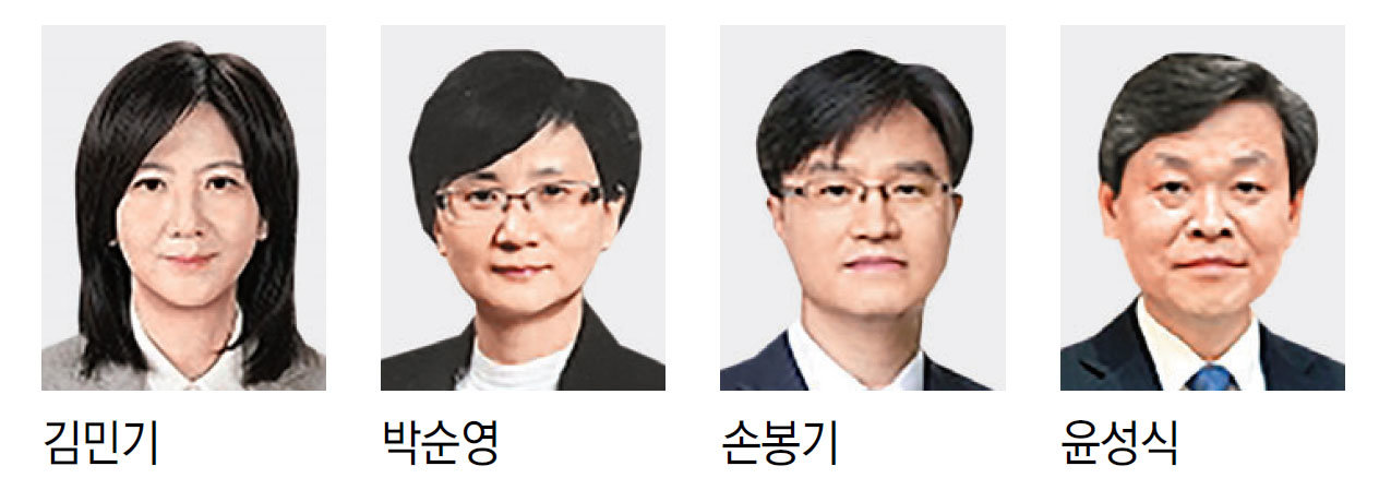 이재명 대통령이 임명하는 첫 대법관 후보가 김민기 수원고법 판사(55·사법연수원 26기), 박순영 서울고법 판사(60·25기), 손봉기 대구지법 부장판사(61·22기), 윤성식 서울고법 부장판사(58·24기) 등 4명(가나다순)으로 압축됐다. 모두 현직 법관으로 남성과 여성이 2명씩 후보에 올랐다.