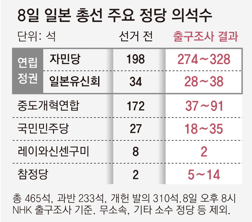 NHK “연립정권 302∼366석 전망”