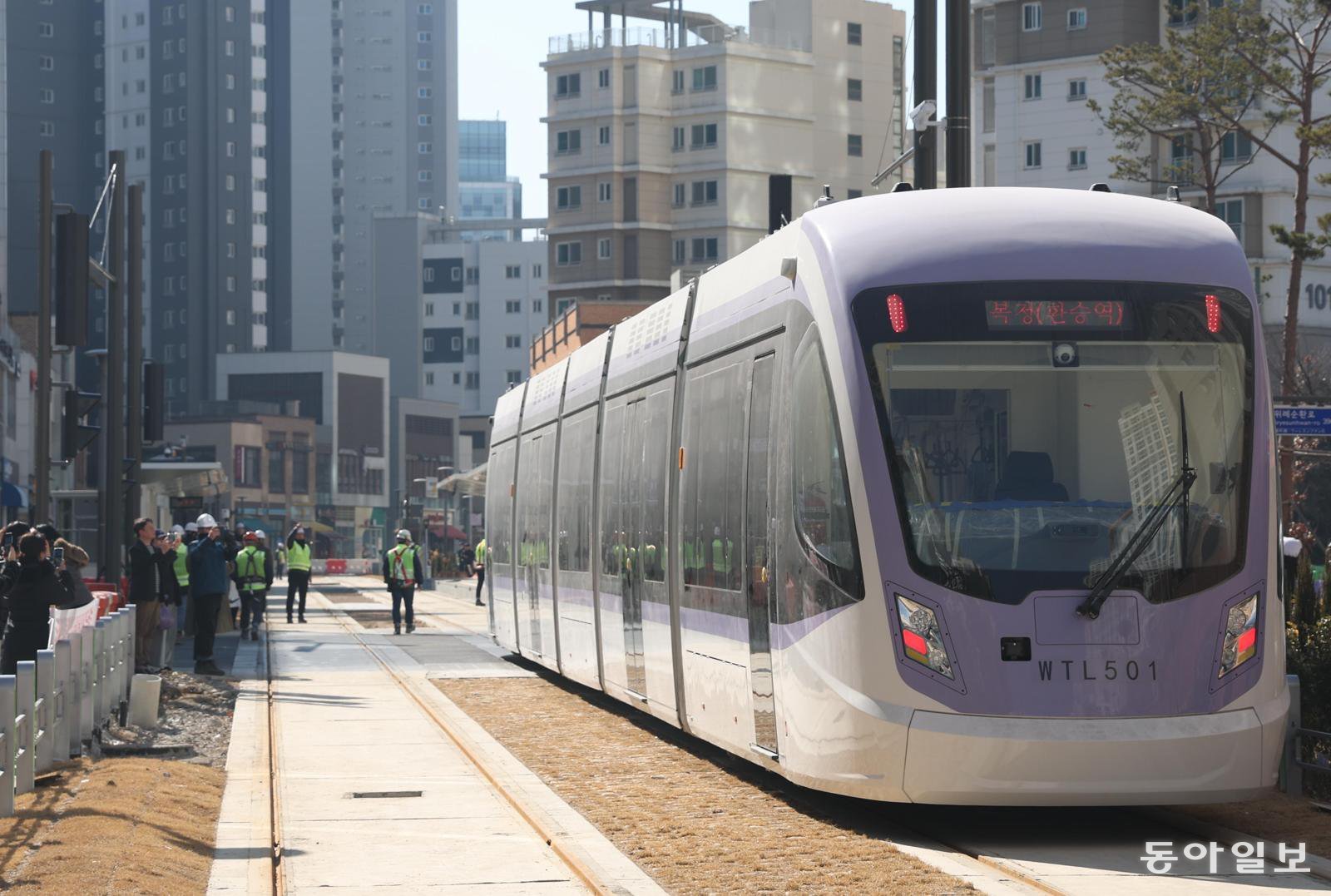 19일 서울 송파구 위례신도시에서 위례선 트램 차량이 시운전을 하고 있다. 위례신도시를 남북으로 관통하는 노면전차인 위례선 트램은 지하철 5호선 마천역과 8호선 복정·남위례역을 잇는 5.4km 구간을 운행한다. 종합 점검을 거쳐 올해 연말 정식 개통을 목표로 하고 있다.
