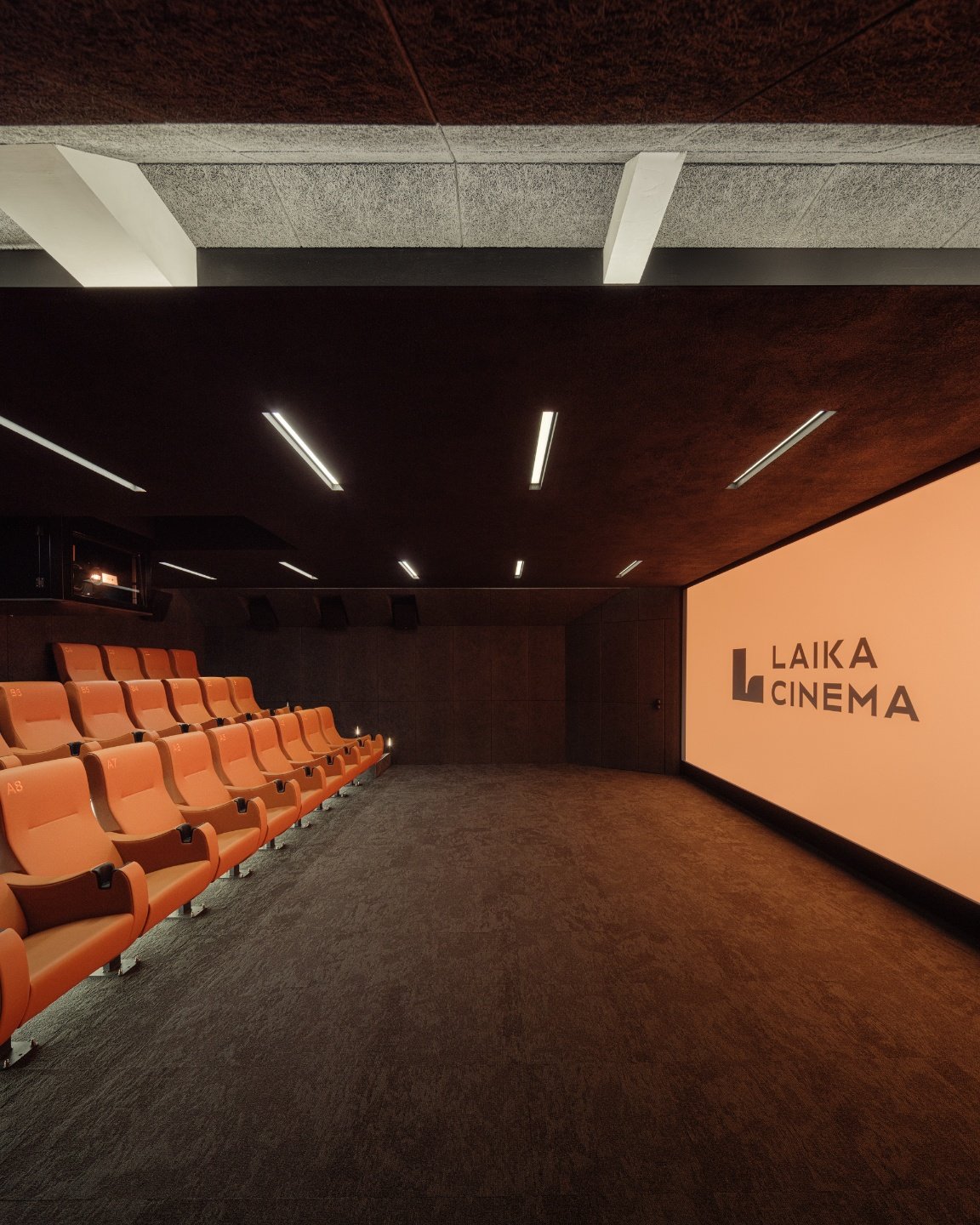 영화관의 설계는 이승호 스튜디오 승호 소장이 맡았습니다. 더 아늑하고 근사한 공간을 위해 그는 영화관 복도까지 조도를 낮춰 블랙박스처럼 만들고 천장에 광선 같은 조명을 삽입해 미래적인 분위기를 만들었습니다. 라이카시네마를 운영하는 회사의 이름은 ‘스페이스 도그(SPACE DOG)’. 라이카는 1957년 인류가 최초로 우주에 보낸 강아지 이름입니다. 이 소장이 가장 중점을 둔 클라이맥스는 의자입니다. 영화관을 조사하면 할수록 의자가 편하고 좋아야 한다는 결론에 이르렀다는군요. 그렇게 선택한 의자는 ‘고토부키(Kotobuki)’ 제품. 주로 콘서트홀에 들어가는 의자를 생산하는 업체로, 영화관 의자 제작은 이번이 처음이었고 그 시작을 위해 좌석 번호를 자수로 새겨 넣는 정성을 보였습니다.