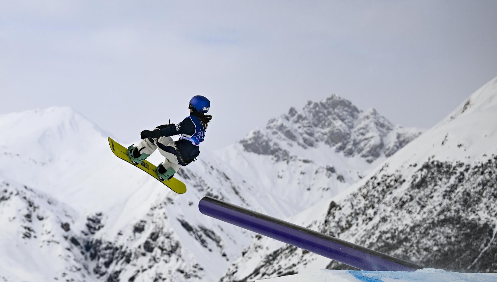후카다 마리(일본)가 18일 이탈리아 리비뇨 스노파크에서 열린 2026 밀라노-코르티나담페초 겨울올림픽 스노보드 여자 슬로프스타일 결선에서 공중 연기를 펼치고 있다. 후카다는 이날 87.83점으로 시상대 가장 높은 곳에 섰다. 리비뇨=신화 뉴시스