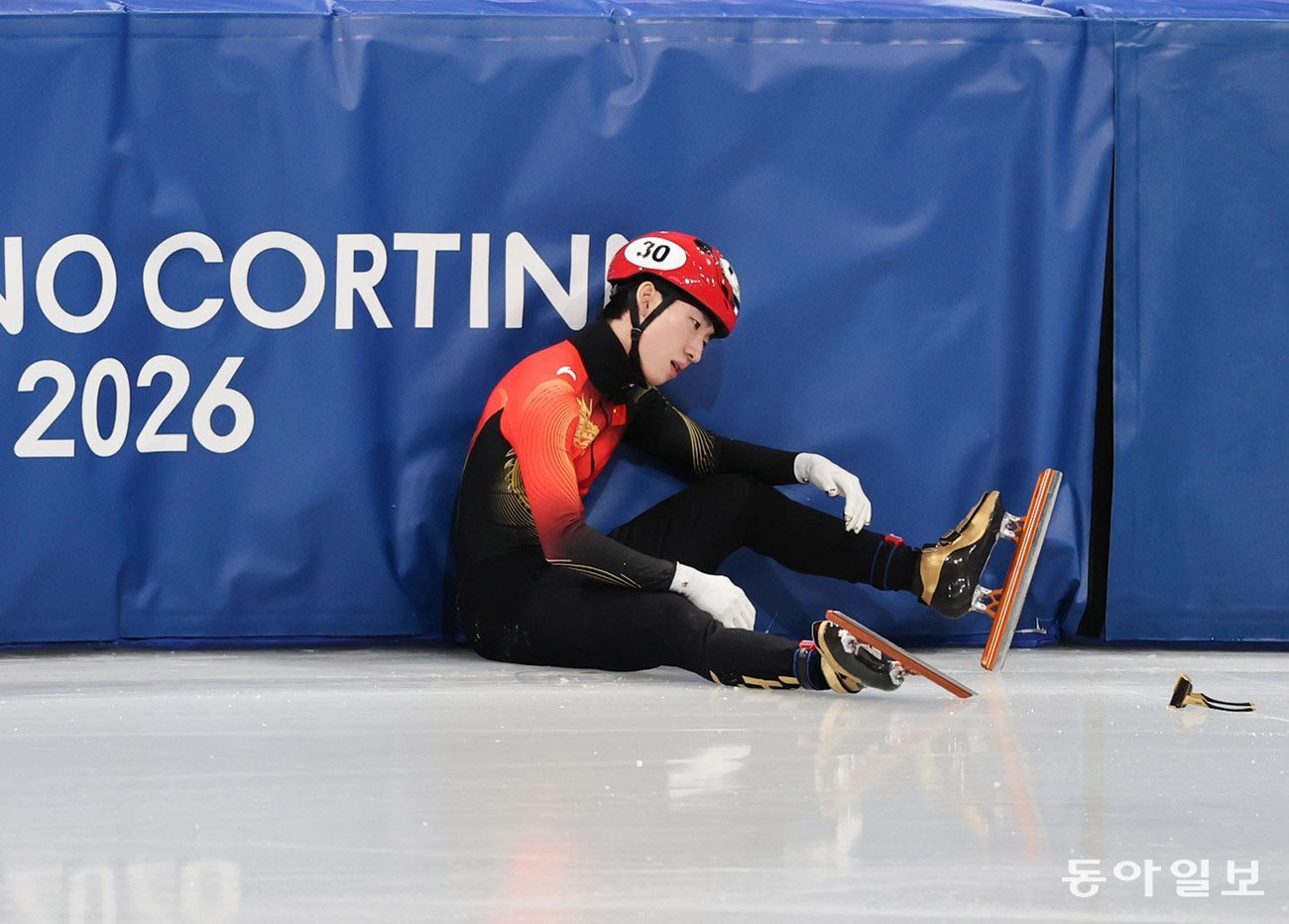 중국의 린샤오쥔(임효준)이 15일 열린 2026 밀라노-코르티나담페초 겨울올림픽 쇼트트랙 남자 1500m 준준결선에서 레이스 도중 넘어진 뒤 망연자실한 표정을 짓고 있다. 밀라노=전영한 기자 scoopjyh@donga.com