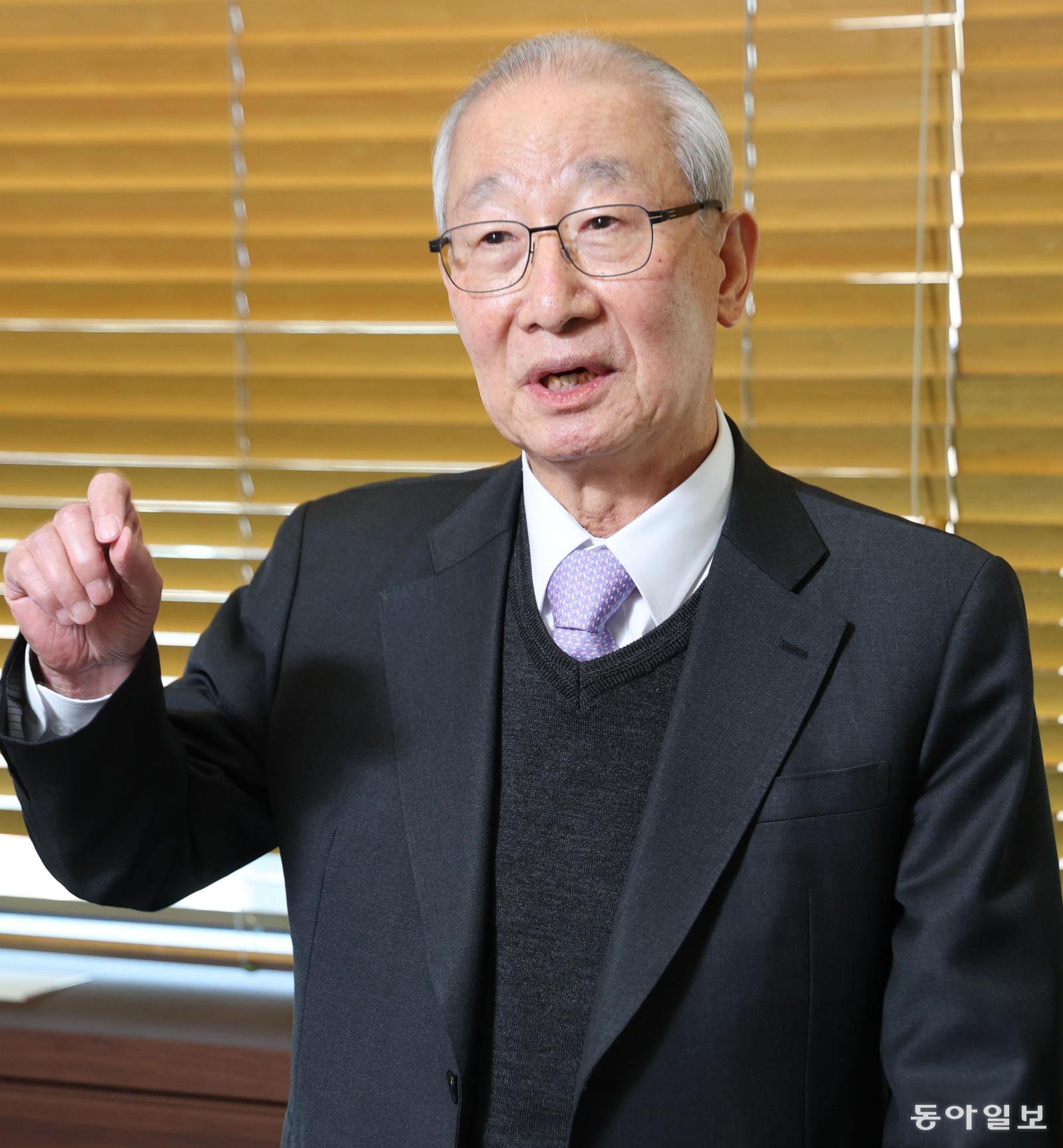 19일 오전 서울 종로구에 있는 법무법인 사무실에서 이강국 전 헌법재판소장이 동아일보와 인터뷰하며 재판소원 등에 대한 찬성 의견을 설명하고 있다.