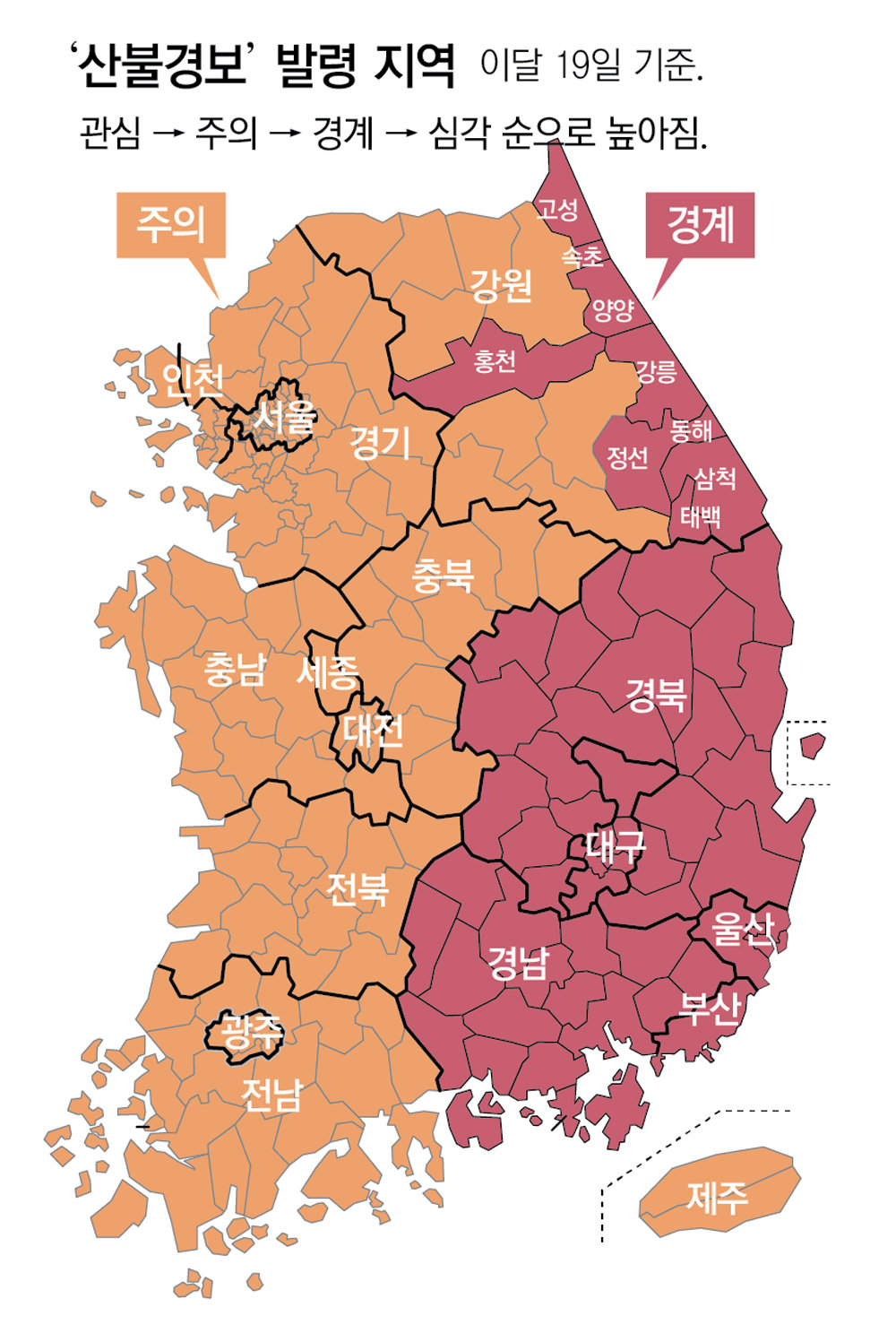 ● 영남 일대는 역대 최장 ‘건조특보’… “또 산불 번질라”