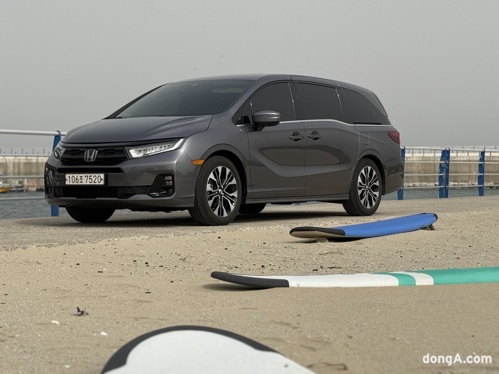 머릿속에 가장 먼저 떠오른 것은 동해 바다였다. 푸른 물결과 모래사장이 눈앞에 아른거렸다. 즉흥적인 여행이라 챙길 게 많았지만 ‘오딧세이’ 덕분에 고민을 덜 수 있었다. 이동할 때 항상 필요한 유아차도 승차감 좋은 8인치 바퀴 제품을 그대로 실었다. 평소 같으면 휴대용도 버거웠을 것이다. 여기에 가족 킥보드 3대, 28인치 캐리어, 각종 아웃도어 장비까지 모두 넣었지만 트렁크를 가득 채우지 못했다. 오딧세이 트렁크 하단이 깊게 파여 있어 수납 효율을 극대화했기 때문에 공간이 남았다. 이 차는 앞뒤 폭 80cm에 천장까지 모두 활용하면 최대 930리터까지 적재할 수 있다.