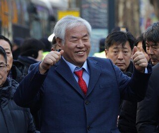 전광훈의 엄지척 vs 김경의 공수(拱手)[청계천 옆 사진관]