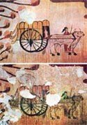 훼손돼가는 고구려의 정신. 중국 지안에 있는 고구려 무용총 벽화. ‘소마차(牛車圖)’의 50년대 이전 모습과 최