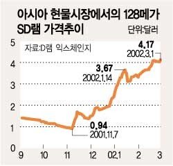 반도체 D램 가격이 저항선으로 여겨졌던 가격수준을 뚫고도 상승세를 이어가고 있다. 특히 현물시장의 가격 상승은