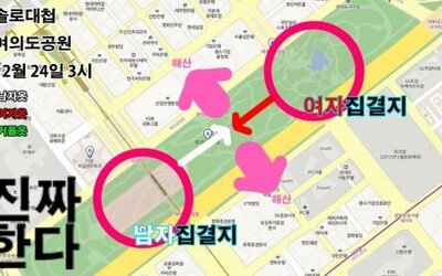24일 오후 3시 서울 여의도공원에선 ‘솔로대첩’ 행사가 예정대로 열렸다. 영하 15도의 한파도 자신의 짝을 찾겠다는 솔로들의 의지(?)를 꺾을 수는 없었다. 이날 행사에는 남녀 1000여명이 운집한 가운데 남성의 비율이 약 90%를 차지했다. 행사에 참가한 이들은 남자는 흰색, 여자는 빨간색, 커플은 초록색 옷을 입고 오후 3시10분 국기 계양대를 기준으로 여자는 왼쪽, 남자는 오른