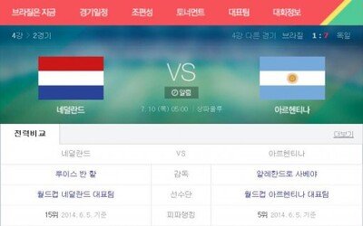 ‘네덜란드 아르헨티나’유럽과 남미를 대표하는 축구 강호 네덜란드와 아르헨티나가 ‘2014 브라질 월드컵’ 4강전에서 물러설 수 없는 한판 승부를 펼친다.양팀은 10일(이하 한국시간) 오전 5시 브라질 상파울루의 아레나 데 상파울루 경기장에서 준결승전 경기를 가진다.네덜란드는 8강전에서 코스타리카를 승부차기 접전 끝에 제압했고 아르헨티나는 벨기에에 1―0 승리를 거