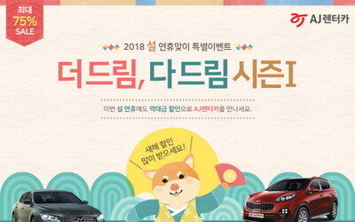 AJ렌터카는 이달 48시간 이상 차량을 대여하는 고객에게 최대 75%의 할인을 적용한다고 6일 밝혔다. AJ렌터카에 따르면 신규회원이 고급, 승합, SUV 차량을 이용하는 경우 70%, 중형 차량은 60%의 할인이 적용되며, 특히 2017년도 추석, 설 명절에 차량을 대여한 고객은 5% 추가 할인된다. 따라서 AJ렌터카를 처음 이용하는 회원은 1일(24시간) 기준, 고급(그랜저) 7만 원대, 승합차(스타렉스) 6만 원 대, SUV(투싼) 5만 원 대, 중형(소나타) 6만 원대부터 이용 가능하다. 전년 명절에 이용한 고객은 여기에 5% 할인이 추가로 적용된다. 이와 함께 연휴 마지막날인 2월 18일까지 제주를 포함한 AJ렌터카 모든 대여 고객에게 총 1만8000원 할인이 가능한 홈플러스 특별 쿠폰북을 증정한다. 홈플러스 매장 및 홈플러스 익스프레스, 홈플러스 온라인 마트에서 사용할 수 있다. 설 연휴 모든 렌터카 대여 고객 중 20명을 추첨하여 홈플러스 상품권 3만 원권도 증정한다. 박준정 AJ렌터