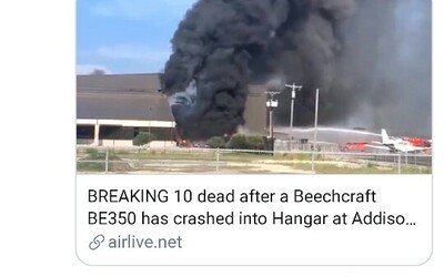 미국 텍사스 주 댈러스 외곽의 애디슨 공항에서 지난달 30일(현지시간) 소형 여객기가 추락해 10명이 사망했다고 로이터·AFP통신 등이 보도했다. 사고가 난 항공기는 쌍발 엔진 터보 비치크래프트 BE-350 킹에어350으로, 목격자들에 따르면 이륙 도중 격납고를 들이받고 화염에 휩싸였다. 이날 애디슨 시 대변인은 “댈러스 카운티 검시관이 탑승자 10명이 사망했음을 확인했다”고 말했다. 애디슨 공항 측은 “사고 비행기는 플로리다행으로, 현지시간으로 오전 9시께 이륙했다”고 말했다. 댈러스 모닝뉴스에 따르면 애디슨의 소방국 대변인은 “항공기가 공항 남쪽 끝에 있는 활주로에서 이륙해 왼쪽으로 방향을 바꾸다가 격납고를 들이받았다”고 했다. 생존자 없이 탑승한 10명 모두 사망했으며, 지상에서 부상자는 발생하지 않았다. CBS뉴스는 익명의 소식통을 인용해 비행기가 이륙 중에 엔진(통제력)을 잃고 격납고 쪽으로 방향을 틀었다고 보도했다. 미국 연방교통안전위원회(NTSB)는 트위터에 사고 원인을 알