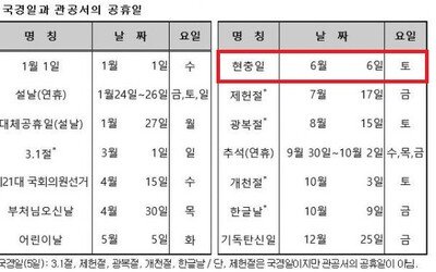 올 6월6일 현충일은 토요일…대체공휴일 적용될까?