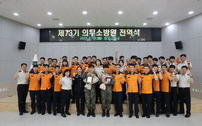 21년간 이어져온 의무소방대가 운영을 종료한다. 소방청은 지난 13일 제73기 의무소방원 92명의 전역을 끝으로 21년간 이어 온 의무소방대 운영을 종료한다고 26일 밝혔다. 앞서 병역자원 감소 등 이유로 의무소방대 제도 폐지가 결정된 바 있다. 의무소방대는 2001년 3월 6명의 소방공무원이 순직하고 3명이 부상 당한 서울 홍제동 단독주택 화재를 계기로 현장 소방 인력 부족 문제를 해결하는 차원에서 도입됐다. 2002년 3월 제1기 209명을 시작으로 지금까지 1만2000여명의 의무소방원이 전국 119안전센터, 구조대, 구급대에서 소방 보조 업무를 수행했다. 남화영 소방청장은 “국민 안전을 지켜온 의무소방대 폐지는 아쉽지만 한결같았던 헌신과 열정은 소방의 역사에 길이 남을 것”이라며 “인력 부족으로 인한 현장 대응 차질이 없도록 인력을 재배치하겠다”고 밝혔다. (서울=뉴스1)