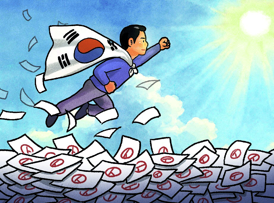 6·3 대선을 앞두고 나는 후보자나 정책을 넘어 한국의 종말이라는 주제에 대해 생각하게 됐다. 4월에 인기가 많은 독일 유튜브 채널 ‘쿠어츠게자크트(Kurzgesagt)’가 ‘한국은 끝났다(South Korea Is Over)’라는 제목의 동영상을 올렸다. 알록달록하고 유머러스한 애니메이션과 함께 통계를 자세히 소개하는 이 영상은, 한국의 저출산율이 2060년까지 인구, 경제, 문화, 심지어 군사력까지 붕괴시킬 가능성이 높다고 경고했다. 이 끔찍한 분석 영상은 두 달 만에 1200만 조회수를 기록했다. 작년 초 한국의 높은 자살률을 다뤄 화제를 모았던 미국 유튜버 마크 맨슨의 영상보다 조회수가 1000만이나 더 많았다. 내가 ‘한국은 끝났다’를 보며 가장 인상 깊었던 점은 영상의 내용보다 영상 아래 한국인들의 댓글이었다. 한국 사회가 점점 어려워지고 있다는 영상 속 묘사가 전혀 과장되지 않았다고 동의하는 한국인들이 적지 않았다. 그들은 소득은 너무 낮고, 직장 문화는 지나치게 힘들며