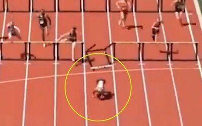 결승선 앞 허들 넘다 ‘꽈당’…두번 앞구르기로 1등 (영상)