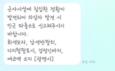 경기 광명시의 한 군사시설 외곽 철조망이 파손된 채 발견돼 외부인의 침입 정황이 포착됐다. 군과 경찰은 즉각 합동 수사에 착수하고, 용의자의 행적 추적과 지역 내 수색을 강화하고 있다.■ 탄약고 인근 철조망 절단…군 관계자 신고광명경찰서에 따르면, 13일 오전 8시경 “군부대에 누군가 침입했다”는 신고가 112에 접수됐다. 군부대 관계자가 탄약고에서 약 250m 떨어진 외곽 철조망 일부가 끊어진 것을 발견하고 신고한 것으로 알려졌다.군과 경찰은 사건 접수 직후부터 주변 CCTV 영상을 확보해 용의자 추적에 나섰다.광명시는 이날 오전 11시 51분경 시민들에게 안전 안내 문자를 발송해 “군사시설에 침입한 정황이 발견됐다”며 “의심자를 발견할 경우 인근 파출소에 신고해달라”고 당부했다.■ 용의자 인상착의는?…에코백 든 디지털 팔토시 착용 남성확인된 용의자의 인상착의는 회색 모자에 남색 반소매 티셔츠, 검정 긴 바지, 디지털 팔토시를 착용했으며 에코백을 들고 있는 것으로 파악됐다.경찰은