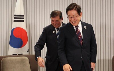 이재명 대통령과 이시바 시게루 일본 총리는 17일(현지시간) 캐나다 카나나스키스에서 열린 G7 정상회의 계기 첫 양자회담을 갖고, 양국 관계의 미래지향적 발전과 협력을 강조했다.회담은 이날 오후 3시 30분께 시작됐다. 이 대통령이 먼저 회담장에 입장해 대기하고 있던 가운데, 이시바 총리를 비롯한 일본 측 대표단이 들어섰다. 이 대통령은 이시바 총리에게 “어서 오십시오, 고생하십니다”라며 인사했고, 두 정상은 국기 앞에서 악수하며 기념 촬영에 나섰다.이때 작은 해프닝이 벌어졌다. 이 대통령과 이시바 총리가 사진 촬영을 위해 자리를 잡는 과정에서 자리를 한 차례 바꿨다가 다시 제자리로 돌아가자, 두 정상 모두 밝게 웃음을 터뜨렸다. 이시바 총리는 외교 관례상 상석인 오른쪽에 섰다. 평소 신중하고 무표정한 이미지로 알려진 이시바 총리도 모처럼 환한 표정을 지었다. 이에 대해 강유정 대변인은 “호스트가 먼저 자리를 잡고 기다리고 초대된 국가가 자리를 잡는다“며 ”우리가 먼저 가서 자리를