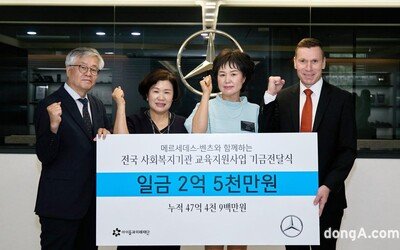 메르세데스-벤츠 사회공헌위원회가 지난 19일 ‘메르세데스-벤츠 올투게더’ 기금 전달식을 진행하고, 전국 34개 아동 및 청소년 사회복지기관에 총 2억5000만 원의 교육 지원금을 전달했다.이번 기금 전달식은 메르세데스-벤츠 사회공헌위원회 마티아스 바이틀 의장, 이은정 위원, 사회복지법인 아이들과미래재단 김효승 상임이사을 비롯해 대표 수혜기관 두 곳이 참석한 가운데 메르세데스-벤츠 코리아 본사에서 열렸다. 메르세데스-벤츠 올투게더 교육 지원사업은 메르세데스-벤츠 코리아, 메르세데스-벤츠 파이낸셜 서비스 코리아 및 11개 공식 딜러사의 임직원들이 지역사회 내 교육과 관련된 재정적 지원이 필요한 아동 및 청소년 사회복지기관을 직접 추천하고 후원하는 임직원 참여형 사회공헌활동 프로그램이다.올해 임직원 추천을 통해 선정된 수혜기관은 서울 ‘용산행복장애인자립생활센터’, 안양 ‘희망나무지역아동센터’, 수원 ‘경동원’ 등 전국 8개 시도 내 34개의 사회복지기관이다. 전달된 기금은 기관별로 아동