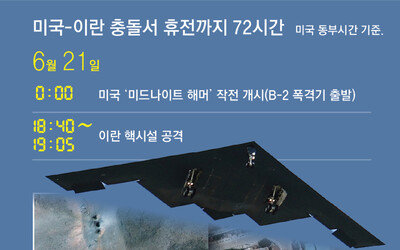 미국이 21일(미 동부시간 기준) B-2 스텔스 폭격기로 이란 핵 시설을 공습한 지 72시간 만인 24일 이스라엘과 이란이 휴전에 들어갔다. 전날 도널드 트럼프 미 대통령은 두 나라의 휴전을 전격 선언했다. 같은 날 이란은 보복 조치로 카타르의 미군기지를 공습했지만 이를 미국, 카타르에 사전 통보해 사실상 ‘보여주기식 보복 조치’임을 강조했다. 미군이 인명 피해를 입지 않았고, 트럼프 대통령은 이에 오히려 “이란에 감사하다”는 뜻을 밝혔다. 이란은 보복 공격 직후 미국이 제안한 이스라엘과의 휴전을 받아들이며 신속히 외교 모드로 전환했다.● 이란 “가장 큰 미군기지 공격” 이란 반관영 타스님통신은 “미국이 21일 이란 핵 시설 3곳을 공격한 데 대한 보복으로 이란이 23일 밤 카타르에 있는 미군기지에 강력한 미사일 공격을 가했다”고 보도했다. 이란 혁명수비대는 ‘승리의 약속’이란 작전명으로 카타르에 있는 알우데이드 미 공군기지를 공격했다고 통신은 전했다. 이란 혁명수비대는 성명에서 “
