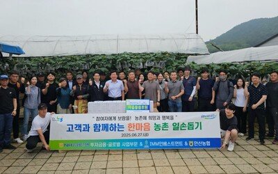 NH농협은행이 범농협 한마음 농촌 일손돕기에 동참했다.30일 농협은행에 따르면 투자금융·글로벌사업부문 임직원과 IMM인베스트먼트 임직원 등 약 30여명은 지난 27일 경기도 안산·시흥시 소재 농가를 방문해 고령농가 일손 돕기를 실시했다.이날 이청훈 투자금융·글로벌사업부문 부행장을 포함한 임직원들은 포도봉지 씌우기 작업을 도왔으며, 폐비닐 수거 등 주변 농경지 정리 활동을 실시했다.이청훈 부행장은 “농촌인구 감소와 고령화로 인한 영농철 일손 부족의 어려움을 돕기 위해서는 지속적인 관심과 지원이 필요하다”며 “앞으로도 다양한 농가에 실질적 도움이 되는 지원 활동을 지속해가겠다”고 말했다.