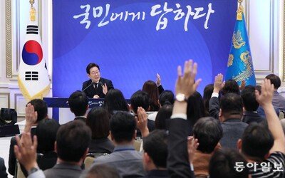 이재명 대통령은 3일 기자회견에서 “대통령이 그렇게 제왕적이지 못하다”고 말했다. 다만 “권력은 견제하는 게 맞다”면서 “감사원 기능은 지금이라도 국회로 넘길 수 있으면 넘겨주고 싶다”고 말했다. 이 대통령은 이날 ‘제왕적 대통령제에 여대야소로 국회의 행정부 견제 기능이 약화될 수 있다’는 우려에 대해 “대통령이 제왕적이라고 하는 것은 어폐가 있다”며 “국회가 여소야대가 돼 버리면 거의 할 수 있는 게 크지 않다. 전임 대통령은 힘들어하지 않았나. 아마 되게 힘들었을 것 같다”고 했다. 이어 “여대야소는 국민께서 선택하신 건데 그것을 당신들의 문제라고 지적하는 건 옳지 않다고 생각한다”면서 “이게 바로 국민의 선택이라는 것”이라고 했다. 이 대통령은 내년 지방선거와 2028년 총선을 언급하며 “내년에 당장 또 심판이 기다리고 있다. 우리가 잘못하면 또 심판당할 것”이라며 “3년 후에는 본격적인 중간 평가가 이루어진다. ‘여대야소 대통령, 민주당 이재명’, ‘국회 민주당 다수는 안 되