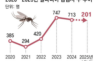“이번 여름 ‘모기 습격’에 대비해 기피제를 세 개나 사뒀어요.” 지난달 30일 경기 파주시 문산읍에서 만난 농민 김명하 씨(64)는 분무기로 하수구와 물웅덩이에 살충제를 뿌리며 이렇게 말했다. 파주시는 하루 평균 말라리아 매개 모기 개체 수가 정부 기준을 넘어 지난달 20일 말라리아 주의보가 발령됐다. 김 씨는 “밭에 작업을 나갈 때는 반드시 긴 옷을 입고, 온몸에 모기 기피제를 뿌린다”고 말했다.최근 수도권에서 붉은등우단털파리(러브버그)가 대량 발생한 가운데 말라리아를 매개하는 얼룩날개모기도 늘어나면서 피해가 커지는 것으로 나타났다. 질병관리청에 따르면 2021년 294명이었던 국내 말라리아 환자는 2022년 420명, 2023년 747명, 지난해 713명 등으로 늘어났다. 올해는 6월 말까지 총 201명이 말라리아에 감염됐다. 통상 7∼9월에 본격 유행하는 것을 감안하면 연내 환자가 더 늘어날 가능성이 크다. 최근 말라리아 환자는 북한 접경지뿐 아니라 서울 인천 등 수도권에서도