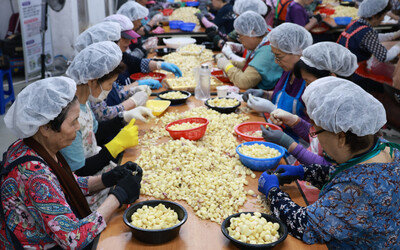 “예전에는 하는 일 없이 하루하루를 보내는 게 일상이었는데, 지금은 일을 해 돈을 벌고 건강까지 챙길 수 있어 정말 재미있습니다.” 지난달 26일 충북 청주시 상당구 무심동로 육거리시장 내 마늘 작업장에서 만난 최병남 할머니(91)가 능숙한 솜씨로 마늘 껍질을 벗기며 말했다. 이곳에서 일한 지 넉 달이 됐다는 그는 “집에서 30분을 걸어오는데, 이 일을 시작하고 나서 몸이 더 좋아졌다”며 “심심하지 않게 하루를 보내는 것도 좋고, 사회에 보탬이 된다고 생각하니 기쁘다”고 했다. 이날 작업장에는 최 할머니를 포함해 80여 명의 어르신이 옹기종기 모여 마늘 작업에 열중하고 있었다. 이들이 하루 동안 손질한 300kg가량의 마늘은 청주 지역 전통시장과 김치 제조업체에 납품된다. 어르신들은 일한 대가로 지역화폐를 받는다. 이 작업장은 충북도가 도입한 ‘일하는밥퍼’ 사업장 가운데 하나다.● 노인 일자리→소득→지역경제 순환 행정안전부에 따르면 지난해 12월 기준 주민등록 인구 가운데 65세