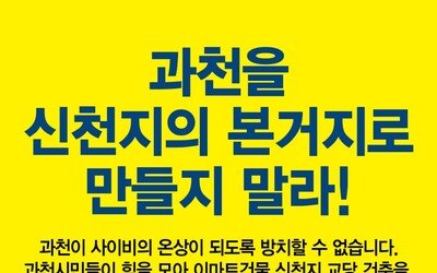 신천지예수교 증거장막성전(신천지)이 과천시에 있는 자신 소유의 건물에 대한 종교시설 용도변경을 추진하자 이를 저지하려는 시민들과의 갈등이 격화되고 있다. 학부모 단체와 아파트 입주자대표회의 등의 집단 서명에 이어 대규모 집회까지 예고되면서 시민 중심의 반대 운동이 거세지고 있다.11일 과천시 등에 따르면 과천시 시민사회단체가 참여하는 신천지OUT비상대책위원회는 12일 오후 5시 중앙공원에서 이마트 건물 종교시설 변경을 반대하는 집회를 연다. 집회 참가 단체들은 ‘과천을 신천지 본거지로 만들지 말라’ ‘시민의 힘을 모아 신천지 교당 건축을 막아야 한다’ 등의 신천지 반대 집회 포스터를 제작해 배포했다.과천시 초중고 학부모연합은 지난달 27일 과천시와 과천시의회에 7000여 명의 서명이 담긴 ‘신천지 종교시설 용도변경 반대’ 민원을 제출했다. 이마트 건물로부터 직선거리 300m 이내에 초등학교와 중학교가 있어 아이들이 현혹될 가능성이 크다는 게 반대 이유다.뒤이어 8개 아파트 단지