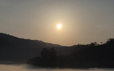 해가 질 무렵, 또 하나의 태양이 물가에 피어납니다. 달빛에 가려질 친구에게 힘을 내라는 듯 더 밝고 선명하게 빛을 내며 응원하네요. ―경북 안동시에서
