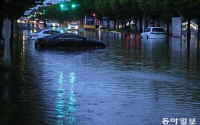 “도시 전체가 수족관이 돼버린 거 같당께요.”광주에서 맥줏집을 운영하는 서광진 씨(45)가 17일 말했다. 이날 광주 일일 강수량은 412.7mm(오후 10시 기준)로, 1939년 관측 이래 가장 많은 양을 기록했다. 서 씨는 “짧은 시간에 물폭탄 같은 비가 퍼붓더니 도시 전체가 물바다가 됐다”며 “도심을 수영해서 다녀야 할 정도였다”고 말했다. 이날 광주 도심은 성인 허리까지 물이 찰 정도로 잠겼고, 맨홀이 역류하는 일도 곳곳에서 발생했다.광주뿐 아니라 충청, 대구, 경남, 수도권 등 전국에서 폭우 피해가 잇따랐다. 거대한 비구름대가 한반도를 북서쪽에서 남동쪽으로 가로지르며 침수와 붕괴로 최소 4명이 숨졌고, 1300여 명이 긴급 대피했다. 기차와 항공, 선박 운항도 중단되며 시민 불편이 이어졌다. 정부는 풍수해 위기경보를 ‘심각’ 단계로, 중앙재난안전대책본부(중대본)도 재난 최고 수준인 3단계로 격상했다.● 광주 도심 물바다, 충청선 인명 피해광주 도심 곳곳이 물에 잠겼다. 남구