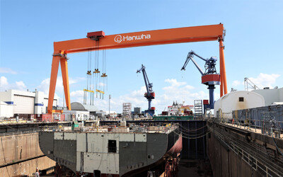 높이 64m에 달하는 ‘골리앗 크레인’이 나타나자, 이 거대한 구조물의 그늘을 빌리고 있던 선박도 이내 모습을 드러냈다. 대형 선박을 안에 품고 한창 건조 작업이 이뤄지던 곳은 길이 330m, 폭 45m의 4번 독(dock). 독은 선박 건조 및 수리를 위한 공간으로, 배를 고정한 채 작업할 수 있다. 16일(현지 시간) 미국 펜실베이니아주 필라델피아의 델라웨어 강변에 위치한 한화 필리조선소(Hanwha Philly Shipyard) 4번 독에선 이렇게 대형 선박이 서서히 위용을 갖춰 가고 있었다. 마침 이날 필리조선소에선 건조를 마친 ‘해저 암석 설치선’(SRIV·해저에 암석을 설치해 구조물을 고정시키는 작업용 선박)을 진수하는 작업도 진행됐다. 이종무 한화 필리조선소장은 서서히 강으로 나아가고 있는 SRIV를 가리키며 “건조 작업 속도를 내서 예상보다 몇 달 앞당겨 이 배를 진수하게 됐다”며 “필리조선소의 역량을 보여 주는 성과”라고 말했다.● “5년 내 생산 능력 10배로”필리