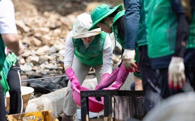 김혜경 여사, 가평 수해복구 현장서 가재도구 씻고 배식봉사