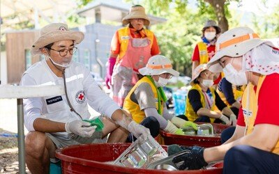배우 안재욱이 수해 복구 봉사에 나섰다.28일 대한적십자사(회장 김철수)에 따르면 안재욱은 지난 26일 경기도 가평군 상면 수해 복구 현장을 찾아 봉사활동을 진행했다.안재욱은 KBS 2TV ‘독수리 5형제를 부탁해!’로 인해 바쁜 일정에도 불구하고, 수해로 큰 피해를 입은 이재민에게 위로의 마음을 전하고, 복구 현장에서 활동하는 봉사자들에게 힘을 보태기 위해 자발적으로 대한적십자사의 복구 활동에 참여했다는 전언이다.폭염 경보가 발효된 지난 26일 아침, 수해 현장에 도착해 피해 상황을 직접 살펴본 안재욱은 “TV에서 보던 것보다 피해 규모가 훨씬 크다”라며 “복구와 급식 봉사 인력이 부족하다는 소식을 듣고 조금이라도 도움이 되고자 봉사활동에 참여하게 됐다”라고 말했다.안재욱은 침수된 가구를 방문해 집안에 밀려든 토사를 삽으로 제거하는 등 현장 복구에 참여했다. 폭염 속에서도 봉사원들을 격려하며 과수원 정리 작업에도 함께 했다. 봉사활동은 600명에 대한 점심 식사를 준비하는 일로 이