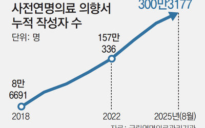 연명의료를 받지 않겠다는 내용의 ‘사전 연명의료 의향서’를 등록한 사람이 300만 명을 넘어섰다. 국립연명의료관리기관에 따르면 2018년 2월 연명의료결정법(존엄사법) 시행으로 관련 제도가 도입된 지 7년 6개월 만에 전체 성인 인구의 6.8%, 65세 이상 고령자의 21%가 연명의료 중단 의향서에 서명한 것으로 집계됐다. 연명의료란 심폐소생술, 인공호흡기 착용 등 치료 효과 없이 임종에 이르는 기간만 연장하는 의료 행위를 뜻한다. 연명의료 거부자가 증가하는 추세는 존엄한 죽음에 대한 관심도가 높아진 사회 변화를 반영한다. 지난해 한국보건사회연구원 설문조사 결과 말기나 임종기 환자가 됐을 때 ‘연명의료를 중단할 의향이 있다’고 답한 비율이 92%였다. 고통이 심한 말기 환자에 한해 의사가 처방한 약물을 스스로 주입하는 등의 방식으로 이뤄지는 ‘조력 존엄사’를 합법화해야 한다고 답한 비율도 82%였다. 회복 가능성이 없는 삶은 의미가 없고, 가족에게 부담이 되기 싫으며, 고통스럽게 죽