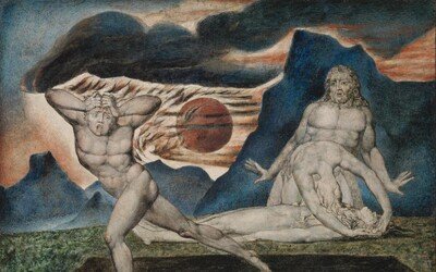 윌리엄 블레이크는 영국의 근대 시인이자 화가이자 판화가였다. 그는 평생 종교적이고 신비주의적인 주제에 관심을 뒀는데, 말년에는 성경 내용을 재해석한 작품을 많이 제작했다. ‘아담과 이브에게 발견된 아벨의 몸’(1826년·사진)은 그가 죽기 1년 전에 그린 것으로, 성경 ‘창세기’에 나오는 카인과 아벨의 이야기를 묘사하고 있다. 카인과 아벨은 아담과 이브 사이에서 태어난 형제다. 형 카인은 농부였고, 동생 아벨은 양치기였다. 신이 아벨의 제물만 받고 카인의 제물을 받지 않자 화가 난 카인은 동생을 들로 데리고 가서 죽여버렸다. 성경에 등장하는 최초의 형제간 살인 사건이었다. 많은 화가들이 형이 동생을 죽이는 장면을 묘사했지만, 블레이크는 부모가 아벨의 시신을 발견해 슬퍼하는 장면을 그렸다. 동생에 대한 질투와 시기로 살인을 저지른 카인은 신의 저주를 받고 쫓겨나고 있다. 아니 스스로 괴로워하며 도망치고 있다. 이브는 죽은 아벨의 몸 위로 고개를 푹 숙인 채 흐느끼고 있다. 그녀의 몸짓