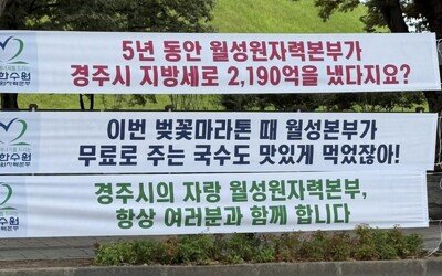 한국수력원자력 월성원자력본부가 경북 경주에 부착한 현수막 속 표현이 논란이다. 김민석 국무총리는 21일 “너무 모욕적”이라며 “경위를 확인하겠다”고 밝혔다. 김 총리가 이날 페이스북을 통해 공개한 사진을 살펴보면 한수원 월성본부는 ‘5년 동안 월성원자력본부가 경주시 지방세로 2190억을 냈다지요’, ‘이번 벚꽃 마라톤 때 월성본부가 무료로 주는 국수도 맛있게 먹었잖아’ 등의 문구를 담은 현수막을 경주 시내에 내걸었다. 기관 홍보 차원에서 내건 현수막으로 보이지만 일각에서는 각종 문구가 단순 홍보를 넘어 ‘생색내기’ 수준까지 나아갔다는 비판이 제기됐다. 김 총리도 이날 “한수원 월성본부가 제작해서 경주 시내 여러 곳에 설치한 현수막이 시민들을 분노하게 만들었다”고 지적했다. 그는 특히 ‘무료 국수’ 내용을 겨냥해 “너무 모욕적이다. 공공기관의 행사 지원은 ‘한 푼 던져주는’ 그런 것이 아니다”고 비판했다. 이어 “주민에 대한 존중이 없으면 소통이 아니다. 그런 태도와 비아냥으로는 국민