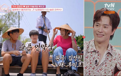 김정민이 루미코의 일상을 보다가 감동했다.25일 오후 방송된 tvN STORY 예능 프로그램 ‘각집부부’에서는 가수 김정민 아내 루미코가 ‘일본의 베네치아’라고 불리는 야나가와를 찾았다.그가 아들 담율이와 담율이의 절친한 친구와 함께했다. 이들이 조심히 나룻배에 탑승했다. 이를 지켜보던 김정민이 “난 왜 안 데려가나~”라며 서운해해 웃음을 샀다.이내 사공의 구수한 가락에 맞춰 나룻배가 움직였다. 아이들은 물고기를 찾는 등 주변을 구경하느라 눈을 떼지 못했다. 모두가 즐거워 보이는 모습에 김정민이 “저거 나 다음에 데려가라”라고 부탁하기도 했다.이 가운데 루미코가 사공의 노래에 화답했다. 특히 남편 김정민의 히트곡 ‘슬픈 언약식’을 열창해 이목이 쏠렸다. 영상을 보고 있던 김정민이 놀랐다. 그가 루미코의 손을 잡고 “사랑해”라며 고마워했다.(서울=뉴스1)