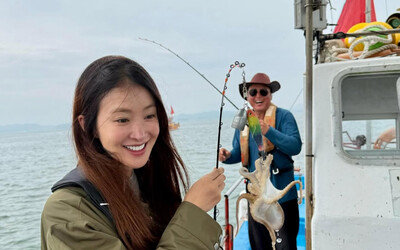 만삭 이시영 아들과 손잡고 여행…배 타고 주꾸미 낚시