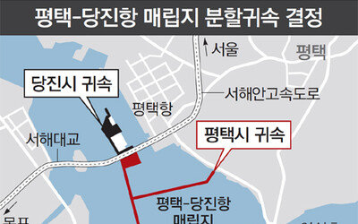 서해대교가 가로지르는 아산만 바다 한가운데 있는 평택-당진항 매립지가 경기 평택시와 충남 당진시에 ‘분할 귀속’된다. 행정자치부 소속 지방자치단체 중앙분쟁조정위원회(위원장 홍정선)는 13일 평택-당진항의 첫 제방 내부 매립지 총 28만2760.7m²를 당진시 관할로, 이를 제외한 나머지 매립지 67만9589.8m²는 평택시 관할로 결정했다. 관할권 분쟁이 시작된 지 5년 만이다. 매립지의 첫 방조제를 기준으로 안쪽(서해대교 북쪽)은 당진시로, 넓은 바깥쪽(서해대교 남쪽)은 평택시로 관할권을 나눈 셈이다. 홍정선 위원장은 “이번 결정은 지리적 인접성, 주민 편의성, 국토 이용 효율성 등을 종합적으로 고려해 판단했다”고 말했다. 이번 관할권 결정으로 평택의 매립지 면적은 당진보다 2배나 크다. 또 앞으로 매립이 진행되면 평택에 속하는 매립지는 계속 넓어진다. 이에 따라 평택시는 환영의 뜻을 밝혔지만, 당진시는 대법원 제소도 불사하겠다고 밝혀 관할권 분쟁은 법정 싸움으로 이어질 것으로 전망된다.