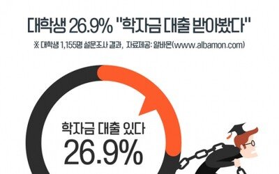 대학생 10명 중 3명은 학자금 대출을 보유하고 있으며, 이들의 1인 평균 대출액은 853만원으로 조사됐다. 아르바이트 포털 알바몬은 25일 대학생 1,155명을 대상으로 실시한 ‘2학기 등록금 마련’에 대한 설문조사 결과를 공개했다. 먼저 대학생 26.9%는 ‘학자금 대출을 받은 경험이 있다’고 답했다. 학년이 증가할수록 대출 경험 역시 증가해 1학년의 경우 14.9%에 불과했으나, 4학년이 되면 2배 이상 많은 36.3%가 학자금 대출 경험을 갖는 것으로 나타났다. 2학년은 24.3%, 3학년은 33.9%로 각각 나타났다. 이들이 받은 학자금 대출액(개방형 기재)은 1인당 평균 853만8000원이었다. 학년별로 살펴 보면 4학년이 1236만2000원으로 인당 대출액이 압도적으로 높았다. 이어 3학년 805만8000원, 2학년 589만7000원, 1학년 514만3000원 순으로 집계됐다. 이어 설문조사에 참여한 대학생들에게 2학기 등록계획