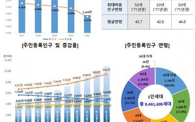 1인 가구 비율, 사상 첫 40% 돌파…주민등록 인구 2년째 감소