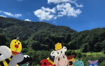 높아진 하늘, 아침저녁으로 선선한 공기. 무지개 바퀴를 힘껏 굴리며 나들이 나온 젖소와 꿀벌, 개구리, 부엉이의 얼굴에 저마다 웃음꽃이 폈습니다. ―강원 내린천휴게소에서