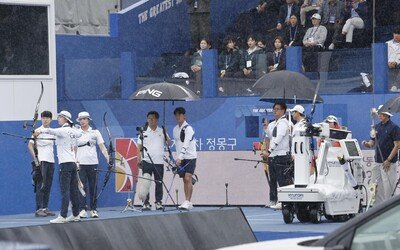 3일 오후 ‘현대자동차 정몽구배 한국양궁대회 2025’가 열린 광주 5·18민주광장엔 굵은 빗방울이 쏟아졌다. 하지만 관중은 정규 대회가 끝난 뒤에도 자리를 뜨지 않았다. ‘세계 최강’ 한국 양궁 국가대표 선수들과 현대차그룹이 개발한 고정밀 슈팅로봇의 ‘세기의 대결’을 보기 위해서였다. 이벤트 매치로 열린 이 경기의 승자는 국가대표 선수들이었다.슈팅로봇은 각종 센서를 통해 바람 방향과 세기를 분석하고, mm 단위로 정밀하게 화살 발사 각도를 조정할 수 있게 만들어졌다. 경기 초반 갑작스럽게 굵어진 빗줄기 탓에 잠시 흔들렸지만 영점 조정이 끝나자 연달아 10점을 적중시켰다.하지만 지난달 광주 세계선수권대회 리커브에 출전한 김우진 이우석 김제덕(이상 남자), 안산 강채영 임시현(이상 여자) 등 국가대표 선수들의 활이 더 정교했다. 이들 6명은 한 발씩 총 6발을 쏴 55점을 합작했다. 슈팅로봇은 54점에 그쳤다.이어 컴파운드 대표팀은 6명 전원이 10점 과녁에 화살을 꽂아넣어 58점을