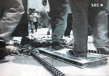 18日,在光州國立5.18公墓,盧武鉉總統爲緬懷民主運動志士而準備的花圈被韓總聯學生踐踏的場面被SBS電視臺攝影記者抓拍。