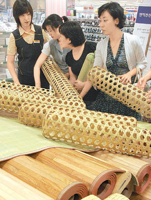 由於炎熱天氣比往年來得早,夏季床上用品開始熱銷。易買得首爾龍山店在6日至10日,對竹夫人、竹涼席、竹墊、汽車坐墊等商品讓利20%銷售。